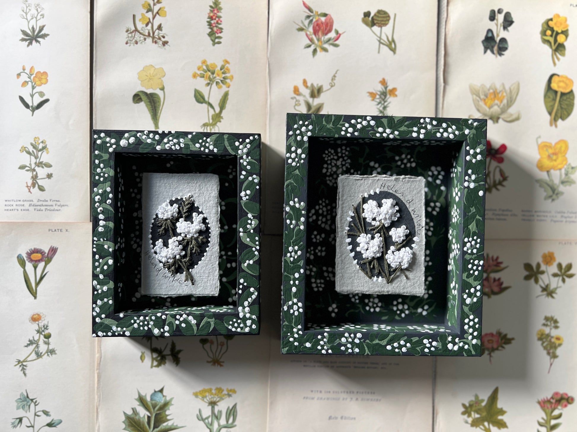 018 - Embroidered wild flowers on Handmade Paper - Framed in Midnight Garden