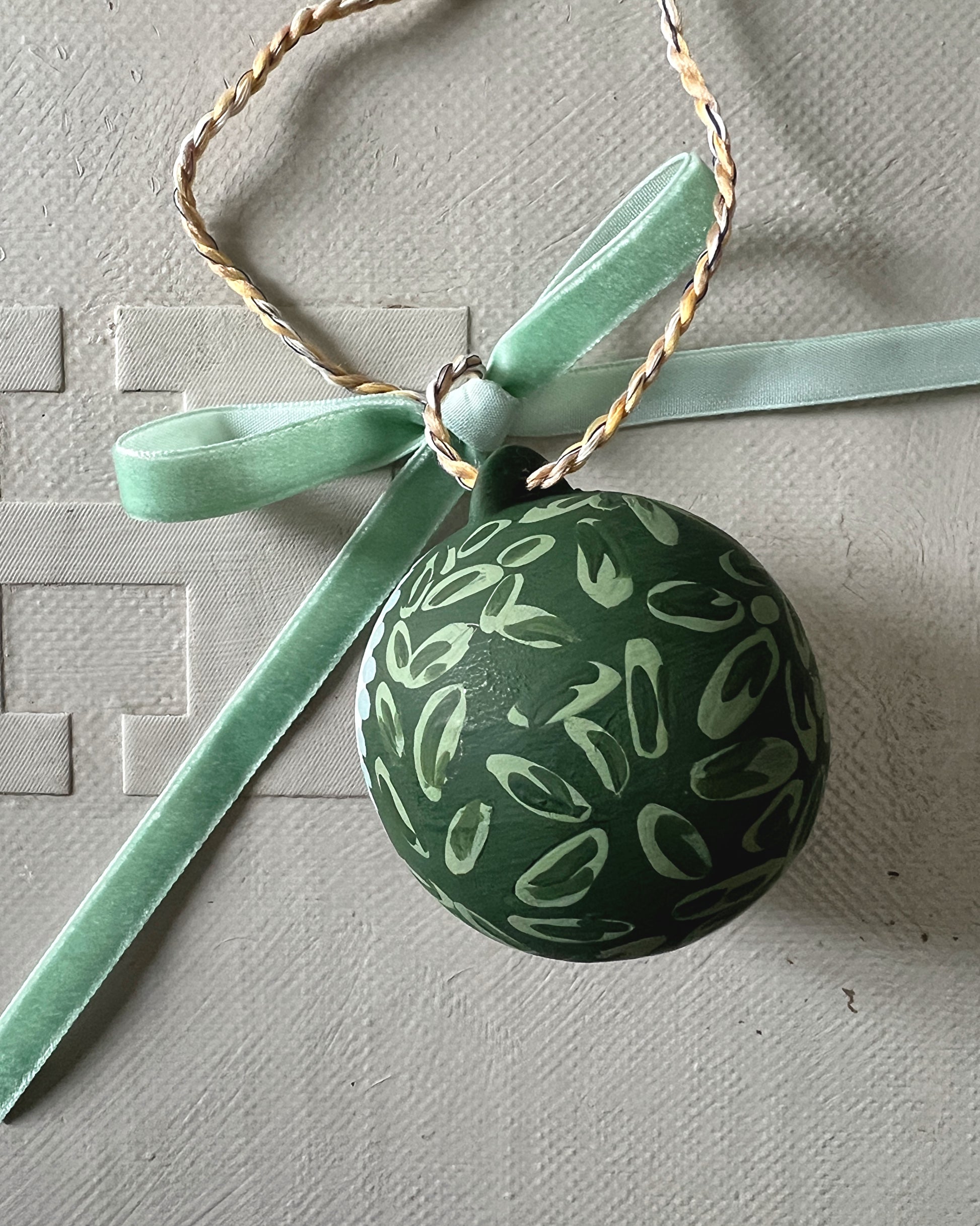 A hand painted ceramic bauble, an exclusive design for this years festive collection. One of three, these baubles are hand painted by myself & finished with silk threads and velvet ribbon.
