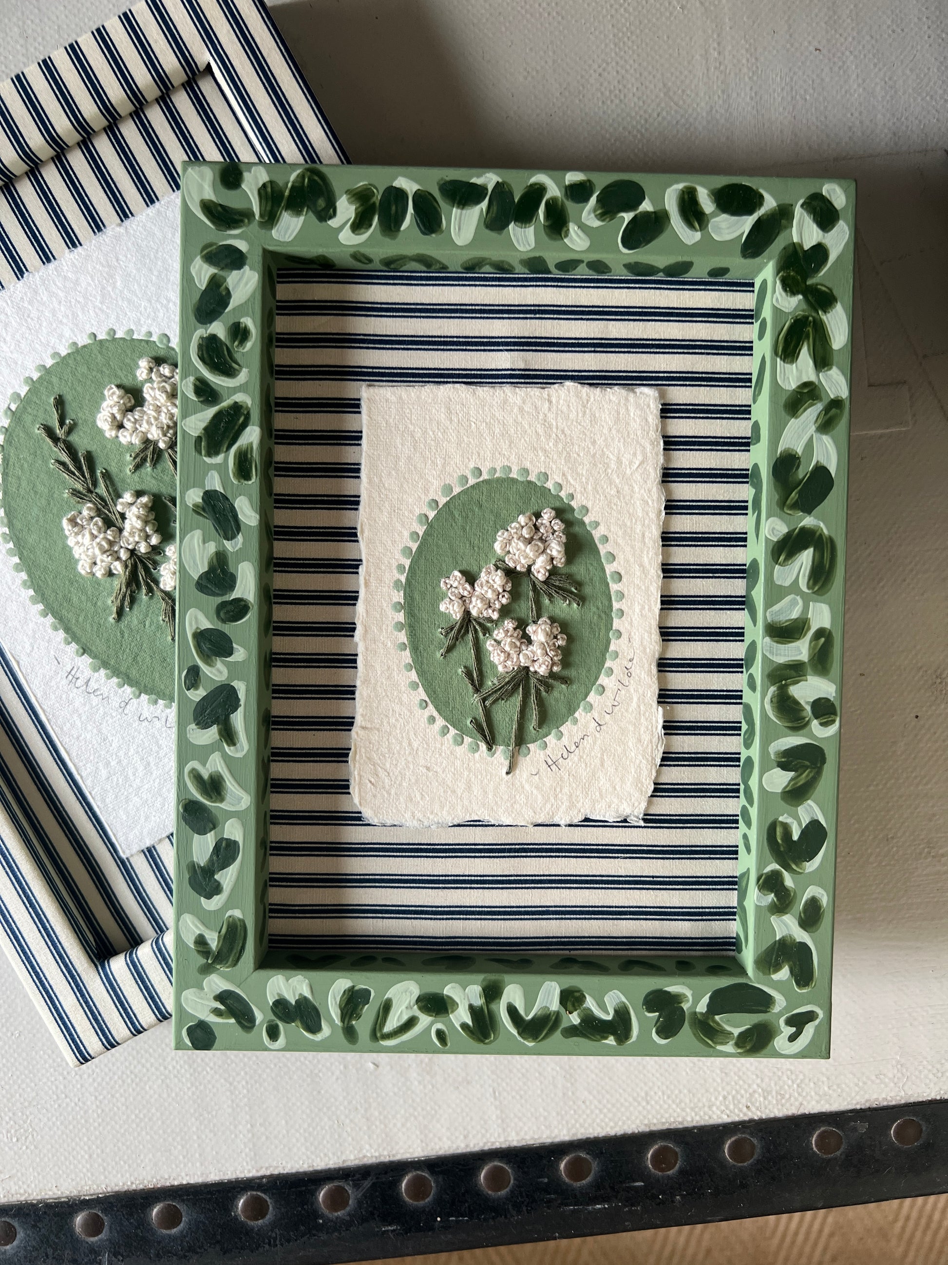 003 - Embroidered wild flowers on Handmade Paper - Framed.